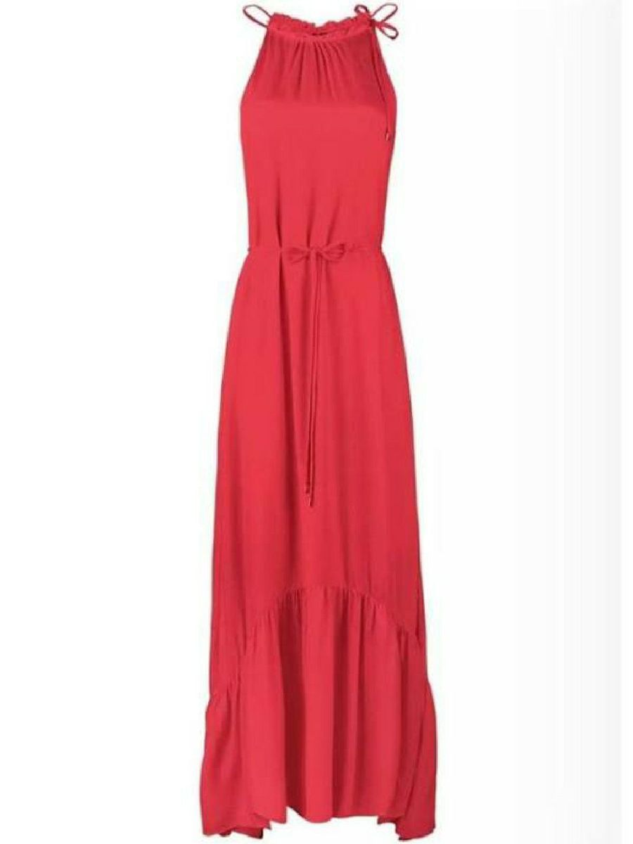 Vestido Longo Com Fenda E Amarra o Costas Vermelho