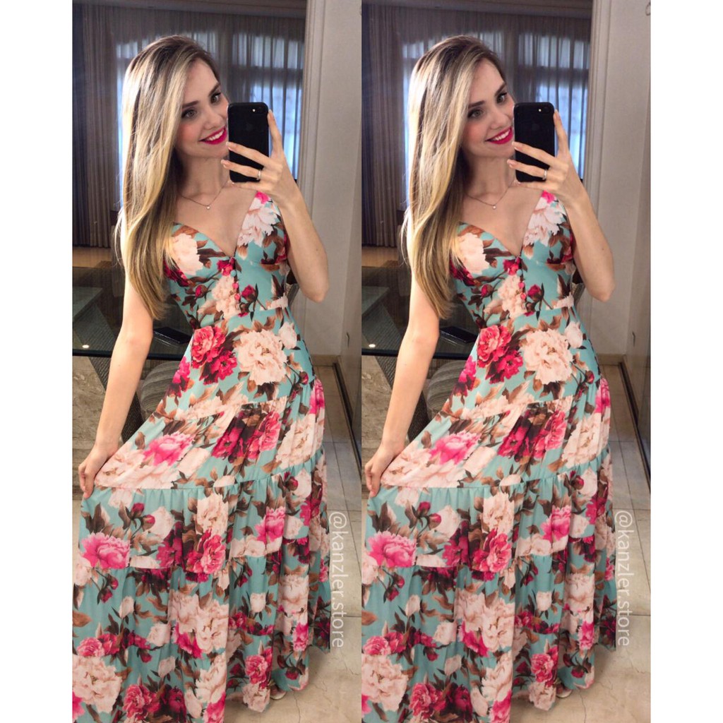 Vestido longo com clearance flores