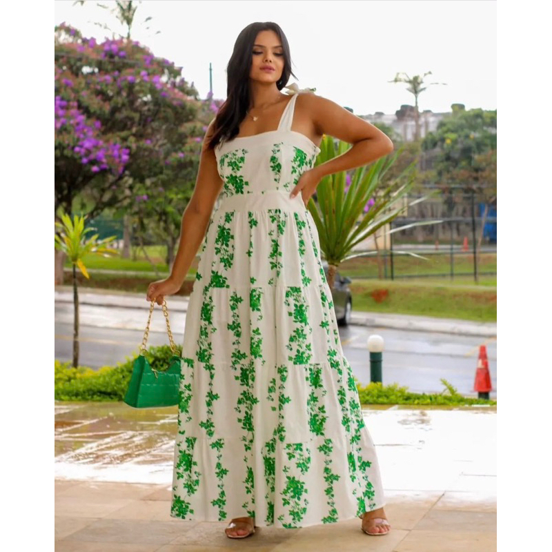Vestido Longo Floral Tricoline