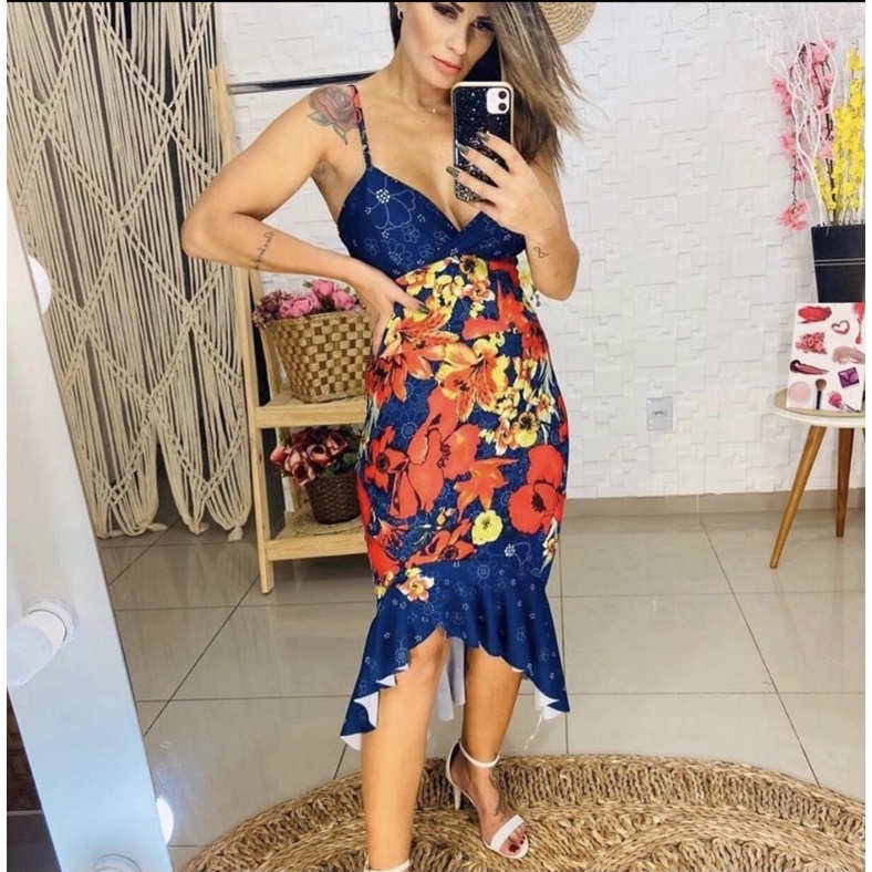 Vestido longo de festa modelo sereia estampado R 129.90 cor