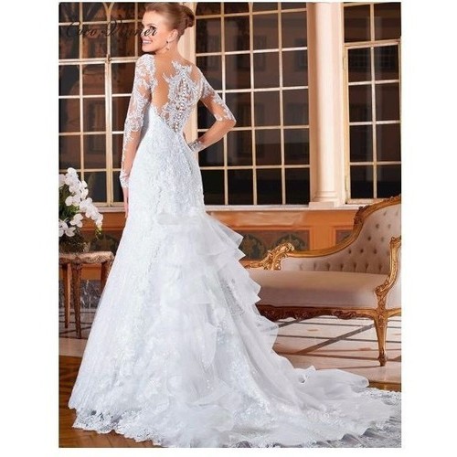 Vestido De Noiva Sereia Com Cauda Mangas Longas Rendas