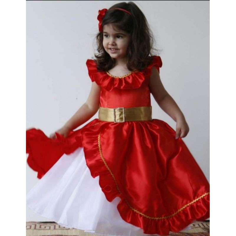 Vestido Festa Vermelho Princesa Elena Avalor Rodado Infantil