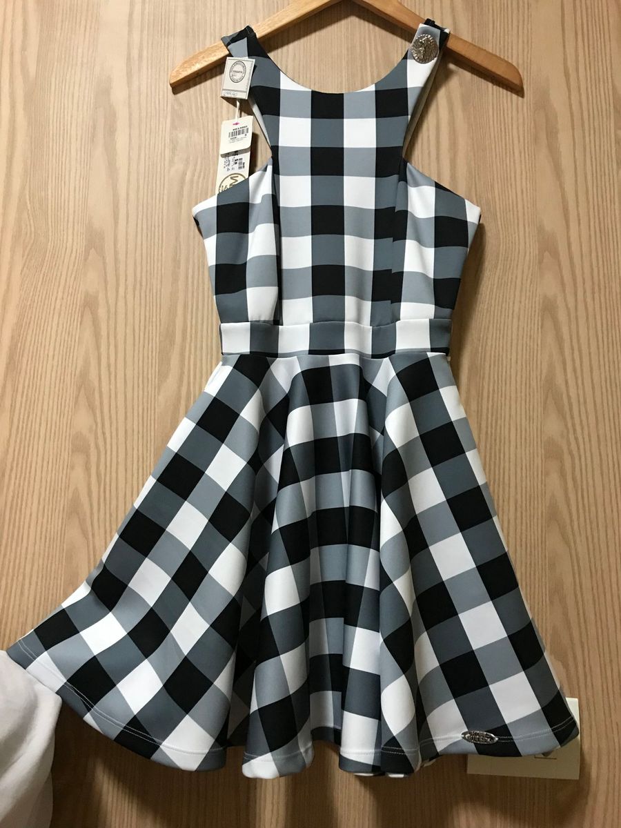 Vestido Feminino Curto Festa Xadrez Preto e Branco Lal Vestido