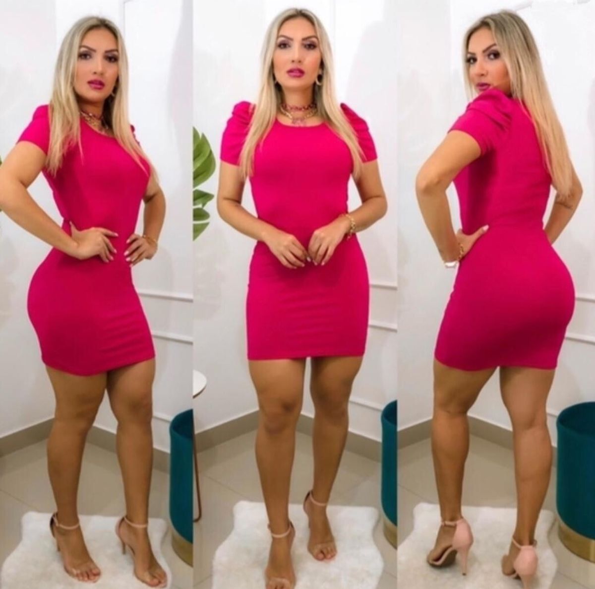 Vestido canelado manga clearance princesa, Vestido Canelado Manga Bufante Princesa Curto clearance