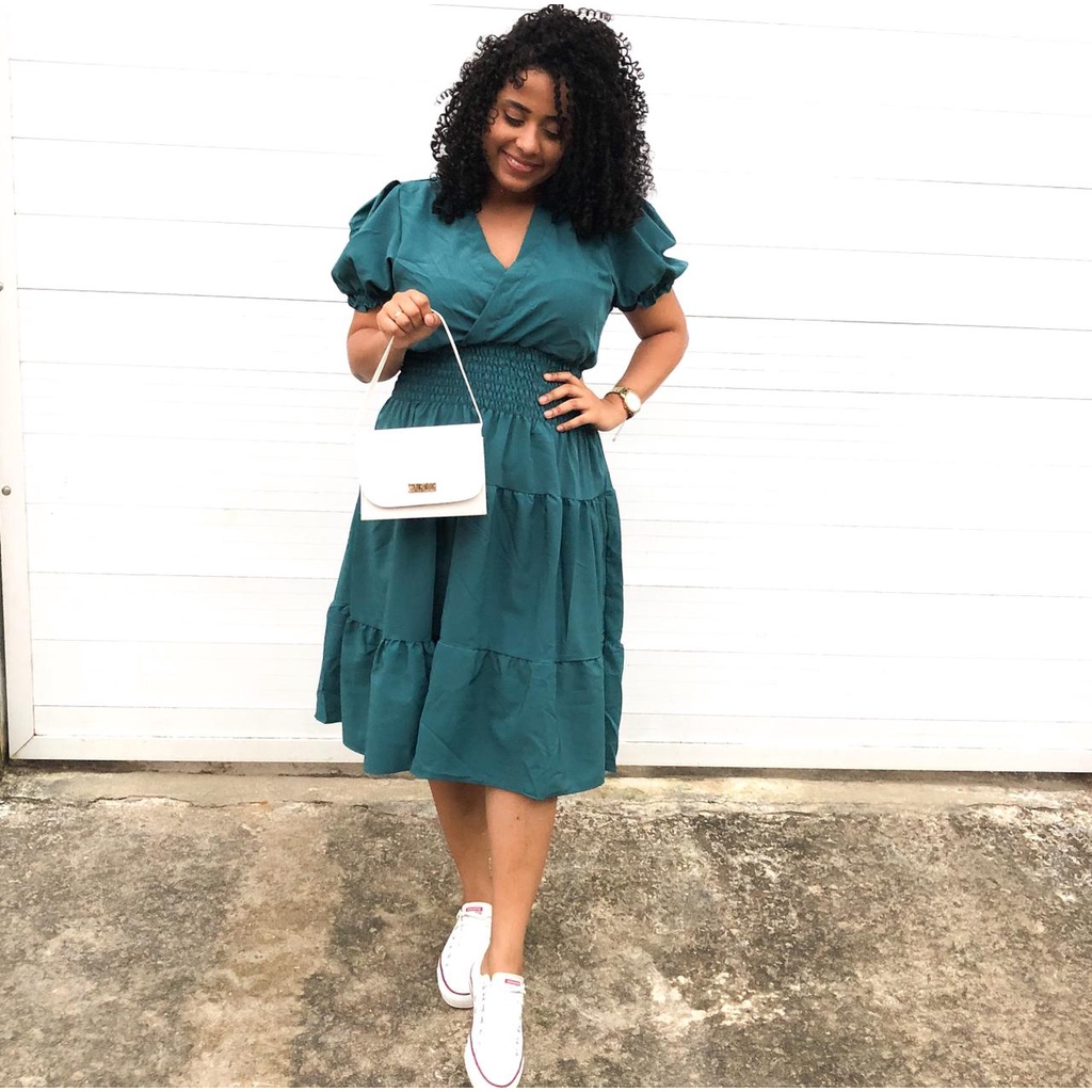 Vestido verde petroleo clearance com renda, Vestido Verde Petr leo Madrinha Manga Curta Evang lico Vl Frete clearance