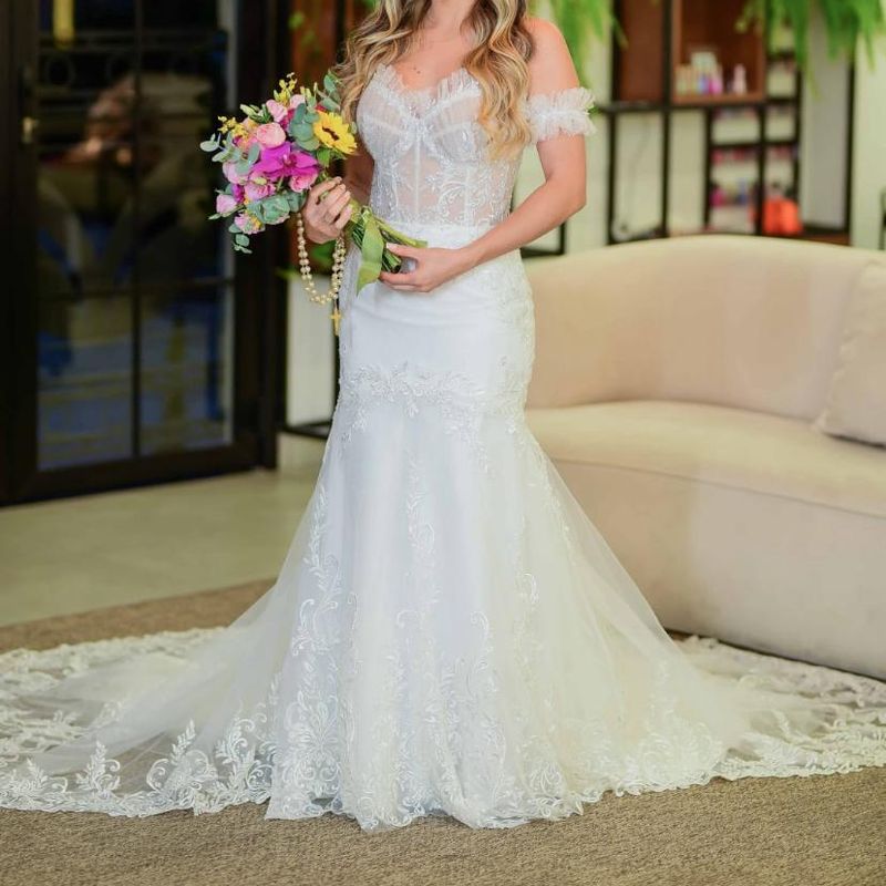 Vestido de Noiva Rendado Vestido de Festa Feminino Usado