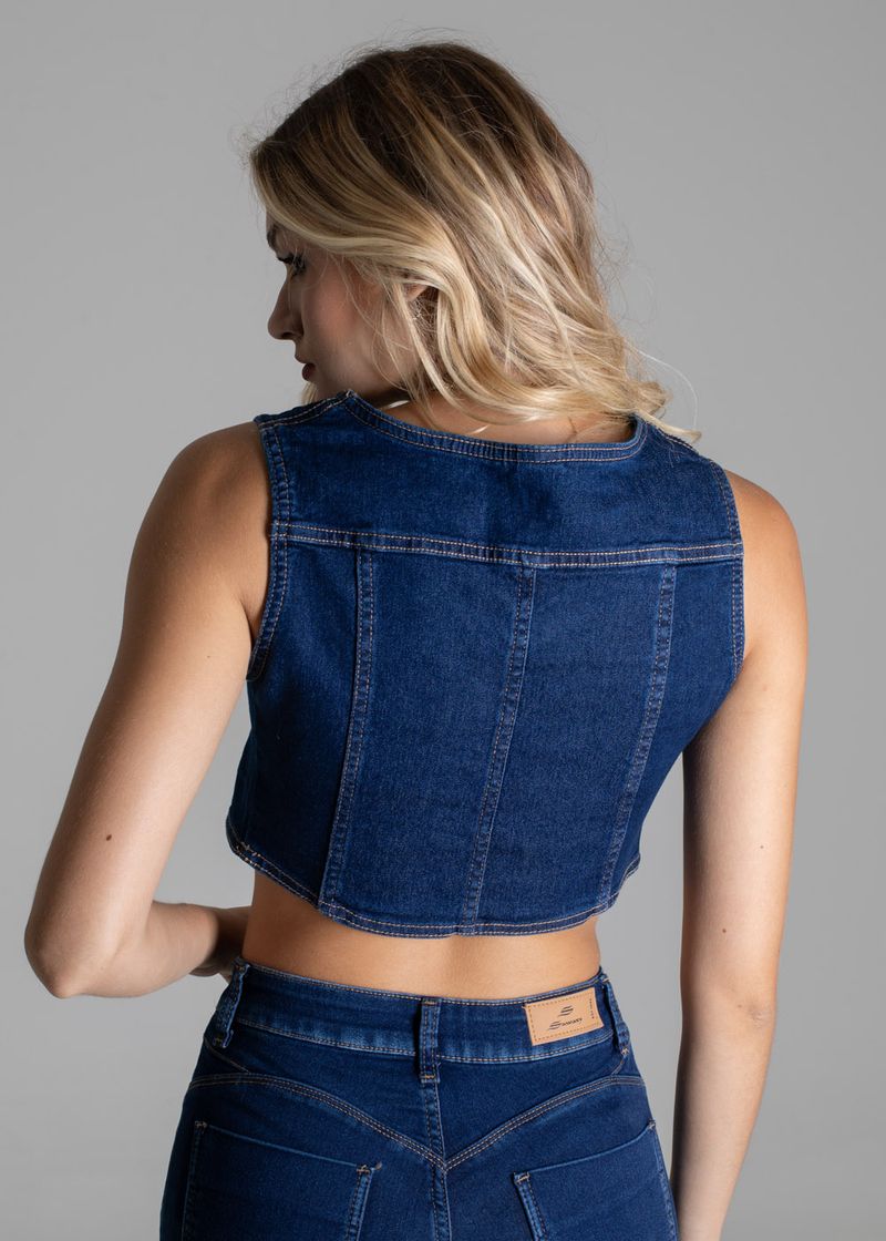 Colete clearance jeans sawary, Colete Jeans Atacado Destroyed Escuro Feminino Revanche Argel clearance