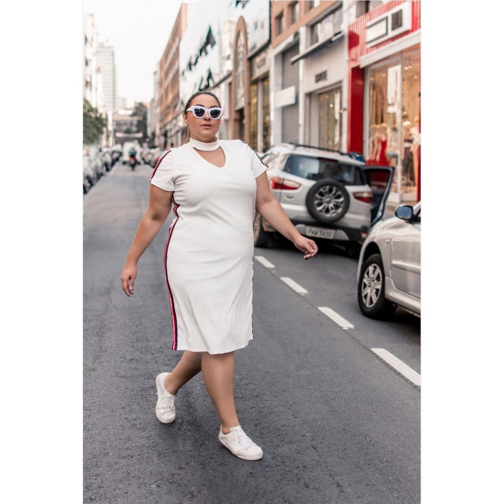 Vestido social feminino plus size modelo choker canelado manga curta com faixas nas laterias