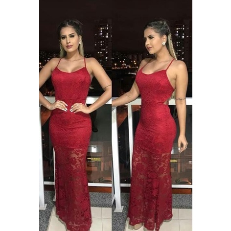 Vestido de renda clearance frente unica, Vestido De renda Frente Unica Longo Sereia Cordinha Nas costas Com Bojo clearance