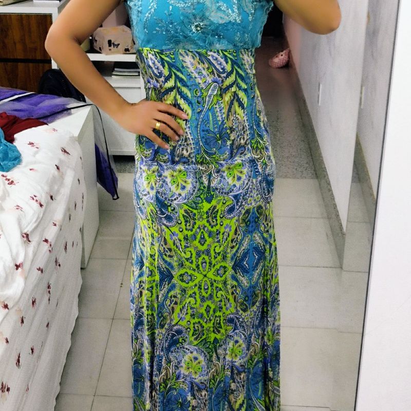 vestido longo seda rendas bordado festa Elo7 Produtos Especiais