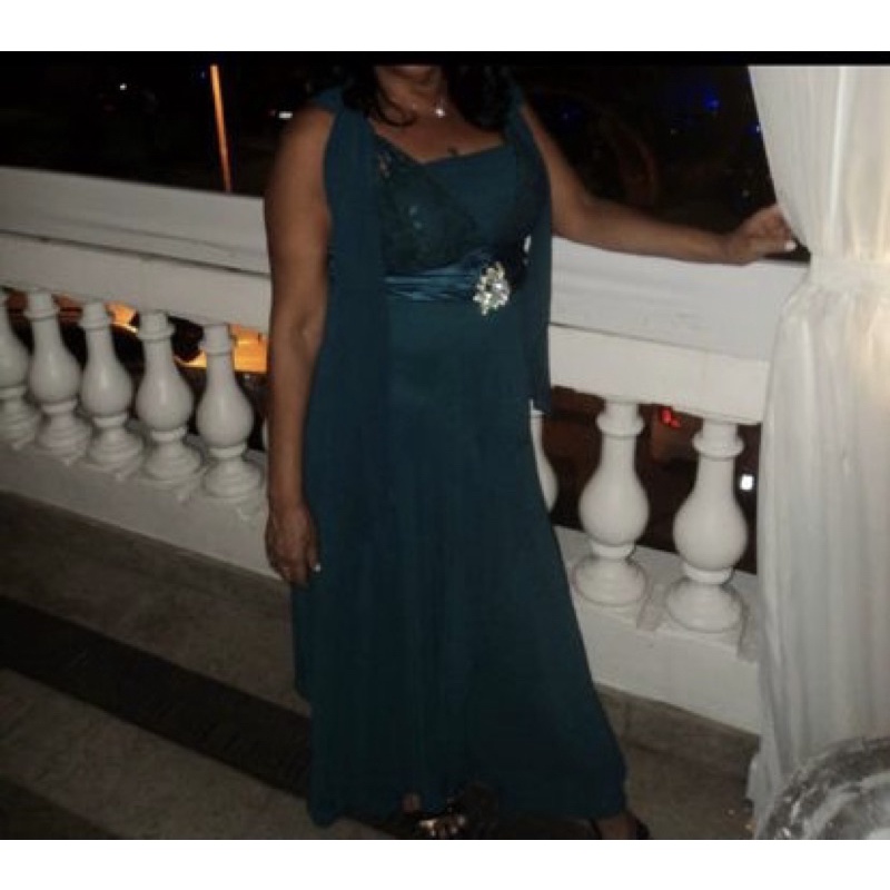 Vestido festa verde clearance escuro, vestido de festa com echarpe verde escuro clearance