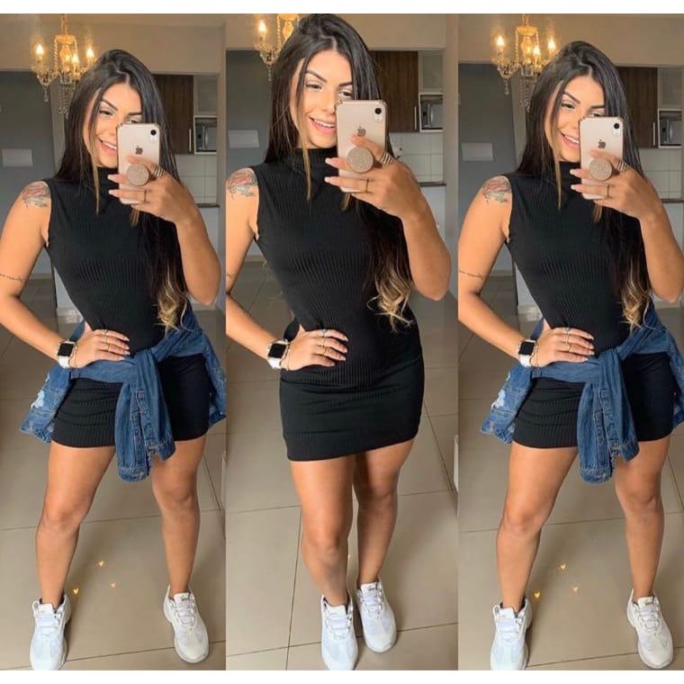 Vestido Colado Canelado Com Gola manga cavada Shopee Brasil