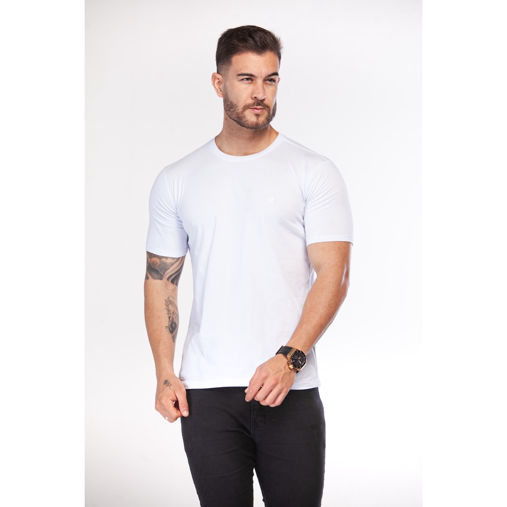 Camisa slim fit clearance branca, Camiseta B sica Branca Slim Fit De Algod o Premium Shopee Brasil clearance