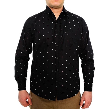 Camisa masculina social clearance estampada, Camisa Preta Masculina Social Estampada Manga Longa Camiseta clearance