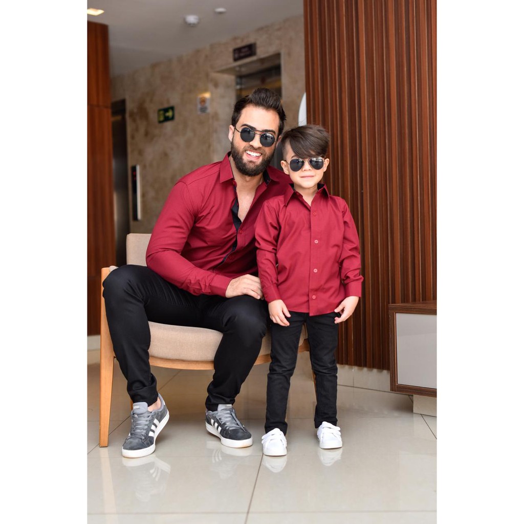 Compre Pai e Filho Camisa Social Lisa Branca na Olimpo Camisaria