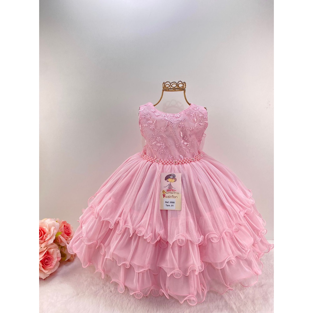 Vestido rosa para clearance daminha, Vestido Rose Bebe Daminha Menina Rosa Casamento Daminha Florista Festa Tamanho 01 ao 03 clearance