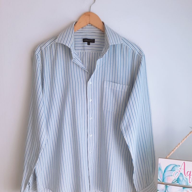 Camisa Social Masculina Branca Listrada com Azul Marinho Camisa