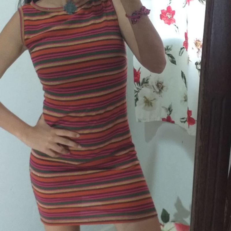 Vestido Rosa Listrado cr lico 100 Veste P Vestido Feminino Usado 92565662 enjoei