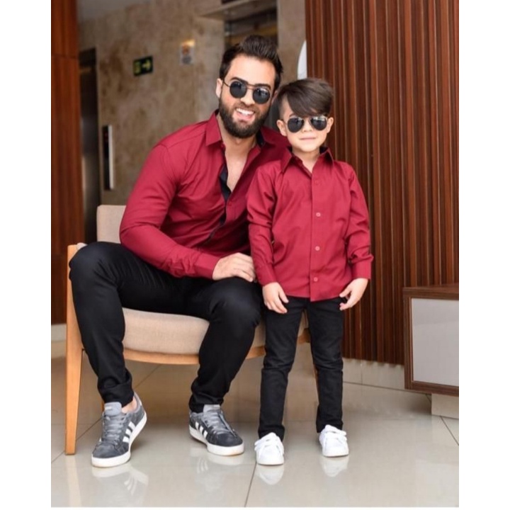 kit TAL PAI TAL FILHO Camisa Social Slim Adulto e infantil de cor Vermelho Algod o
