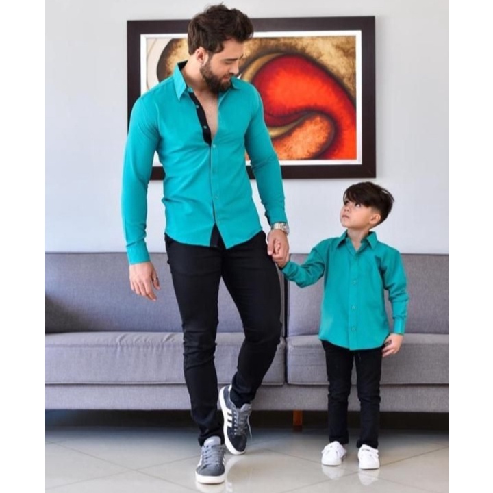 KIT TAL PAI TAL FILHO Camisa Social Infantil Manga Longa PROMO O
