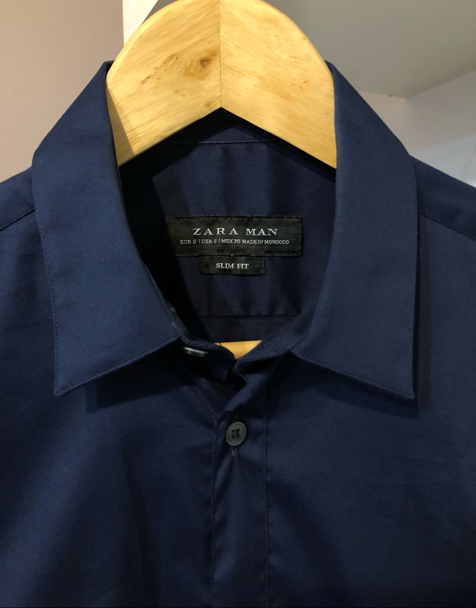 Camisa Social Zara Man Azul Escura Camisa Masculina Zara Usado 39031372 enjoei