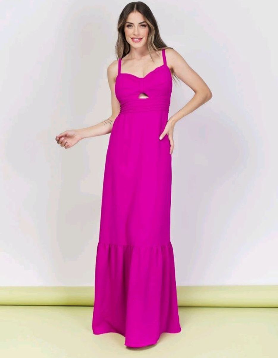Vestido longo rosa clearance choque, Vestido Rosa Choque F csia Longo Vestido Feminino Usado clearance