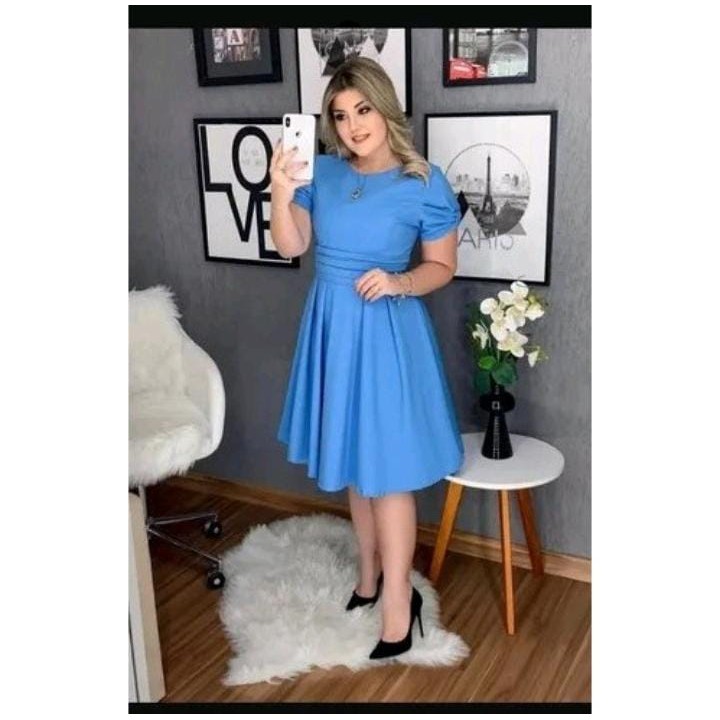 Vestido rodado acinturado clearance no joelho, Kit 3 Vestidos Rodado Ombro a Ombro em Suplex Moda Casual clearance