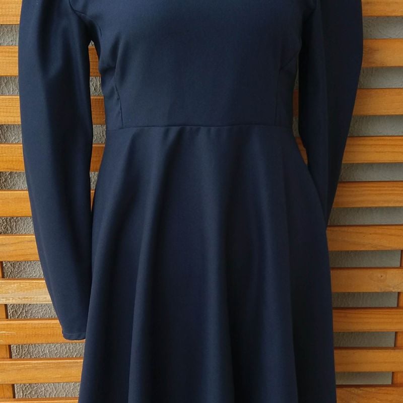Vestido Retr Oxford Manga Longa Rodado Vestido Feminino Feito A Mao Usado 55473305 enjoei