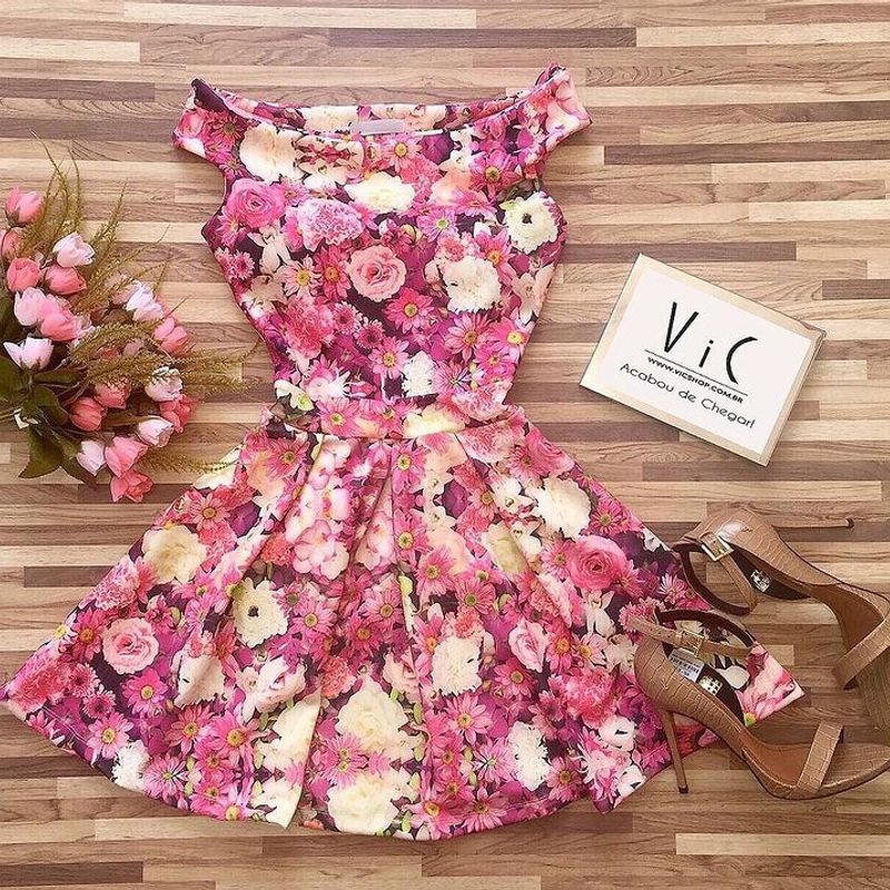 Vestido Estampado Floral Ombro a Ombro Vestido Feminino Vic Usado 50156723 enjoei