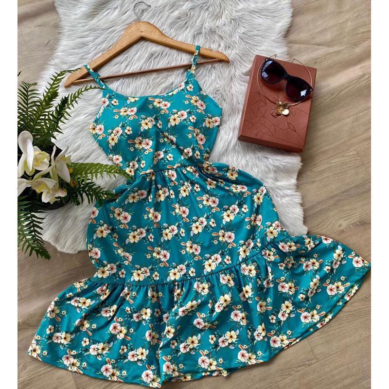 Vestido al a alcinha rodado babado verde flores florido Shopee