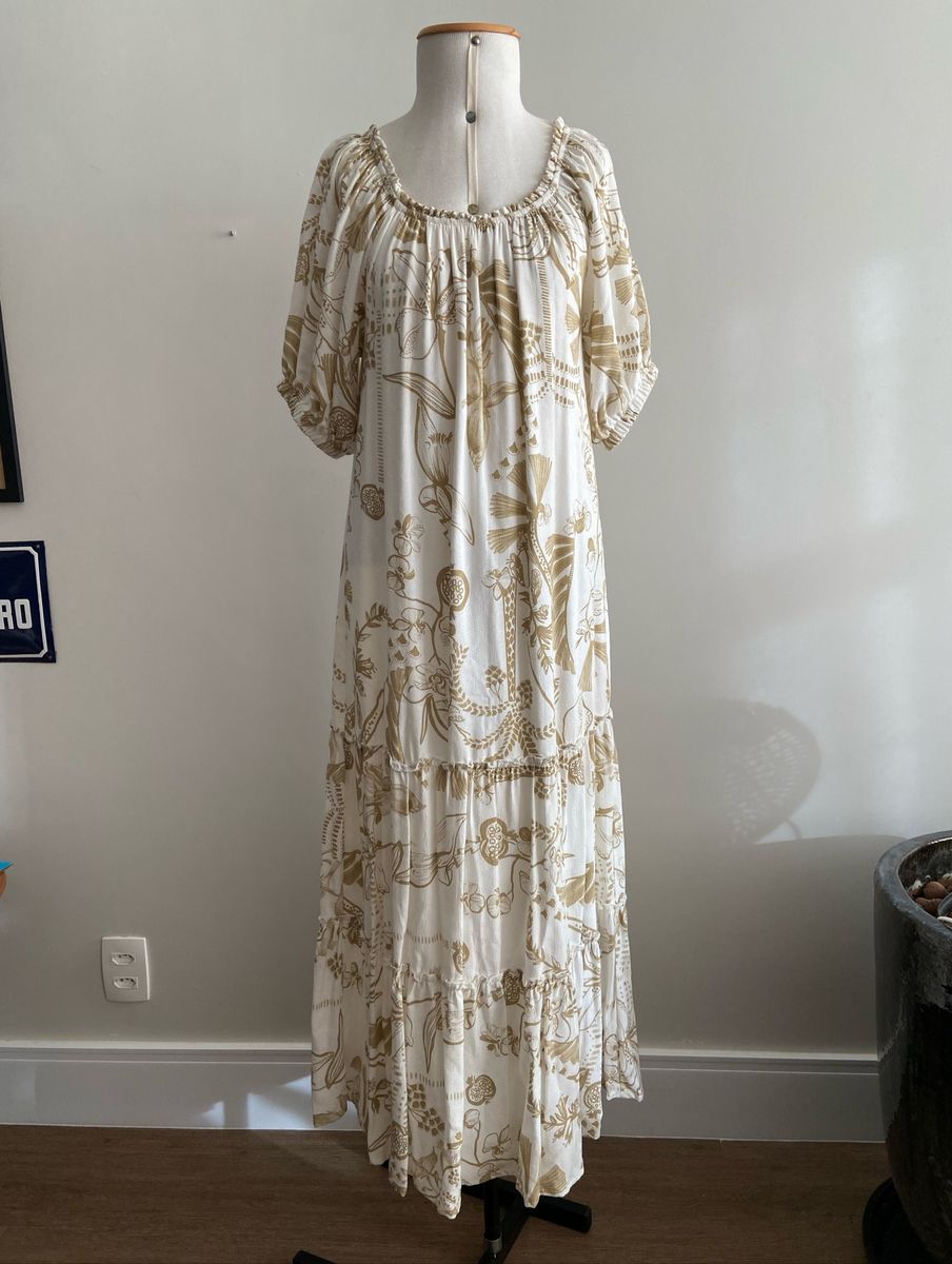 Vestido New Midi em Linho e Decote Ombro a Ombro Branco