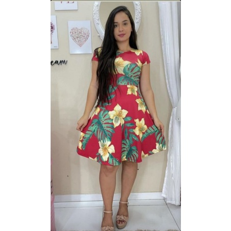 VESTIDO ESTAMPADO RODADO EVAS CREPE DE MALHA MODA EVANGELICA