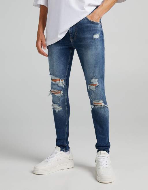 Bershka Super skinny jeans met scheuren en gerafelde zoom in