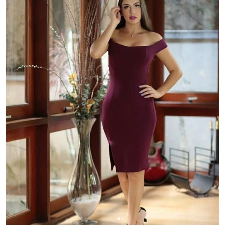 Vestido ombro a clearance ombro vinho