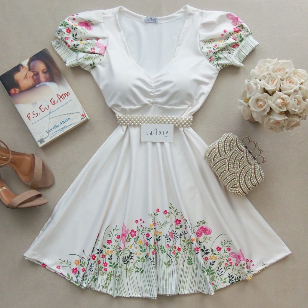 Vestido Feminino Boneca Rodado Floral Com Manga Longa