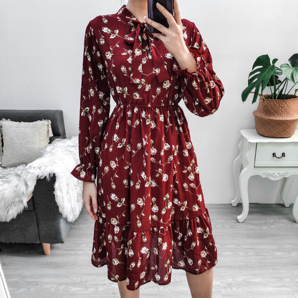 Floral Imprimir Vestido Mulheres 2020 Vestidos De Manga Longa