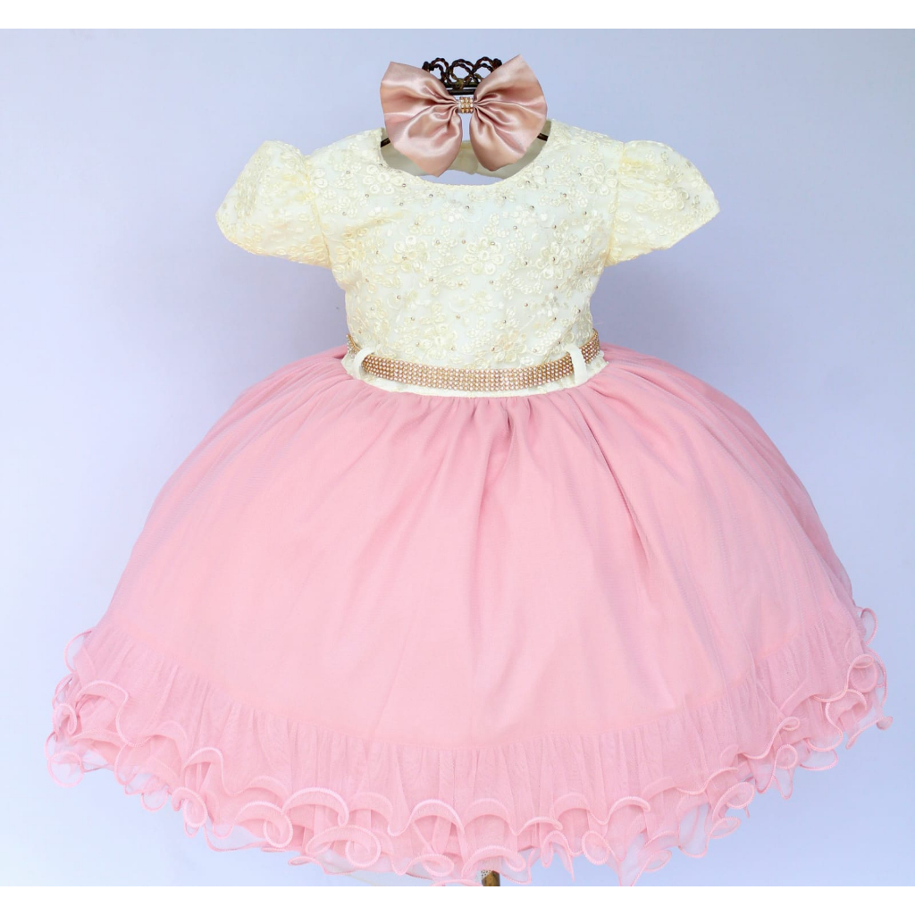 Vestido Infantil Daminha Casamento Festa Luxo creme e rose com