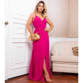 Vestido Longo Transpassado Alca Fina Keyla Nolasco Boutique uma
