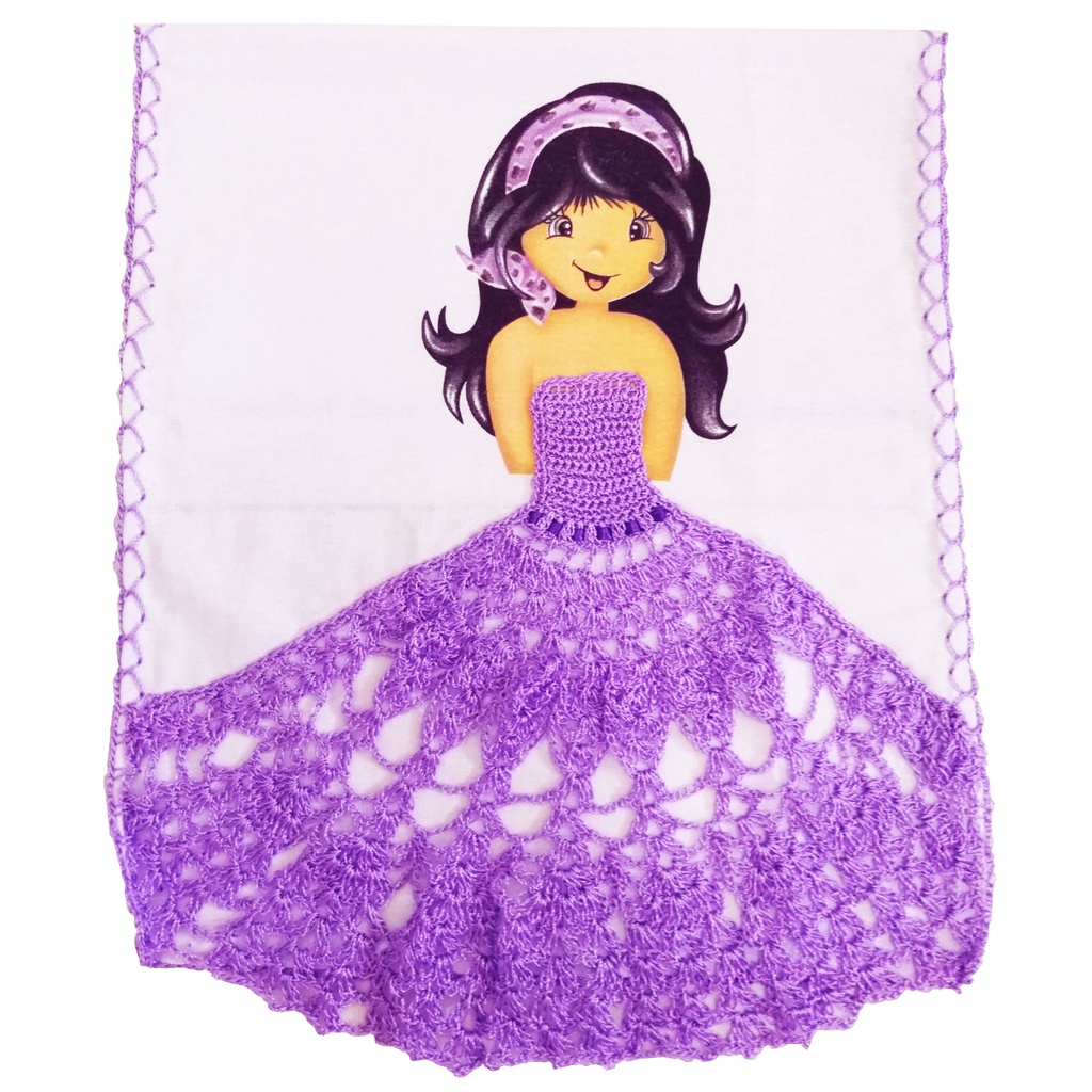 Pano de prato boneca pintada com clearance vestido de croche passo a passo, Pano de Prato de Boneca com Vestido de Croch Roxo e Caseado em clearance