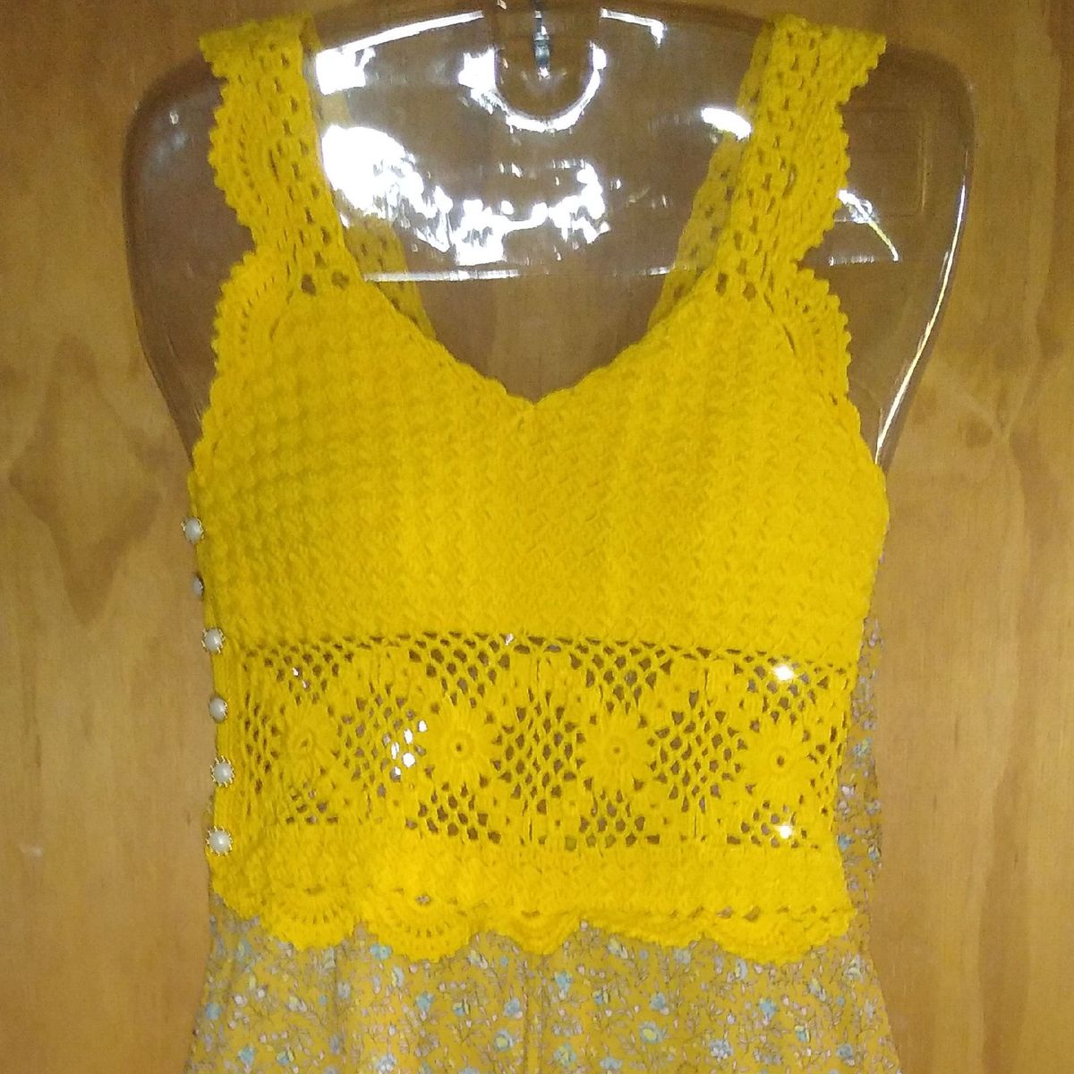 Vestido de Tecido Customizado com Croch Vestido Feminino Usado 76263593 enjoei