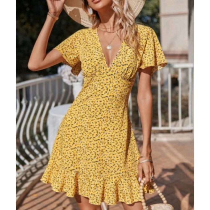 Vestido clearance amarelo florido, Vestido Amarelo Florido Com Bojo Vestido Feminino Lea Clavijo clearance
