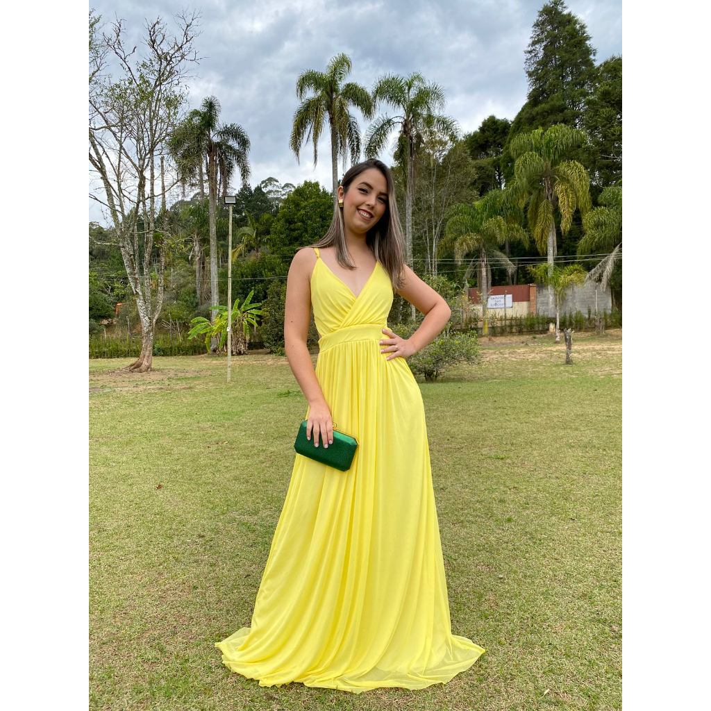 Vestido de Festa Longo Decote Amarelo Victorias Fashion Store