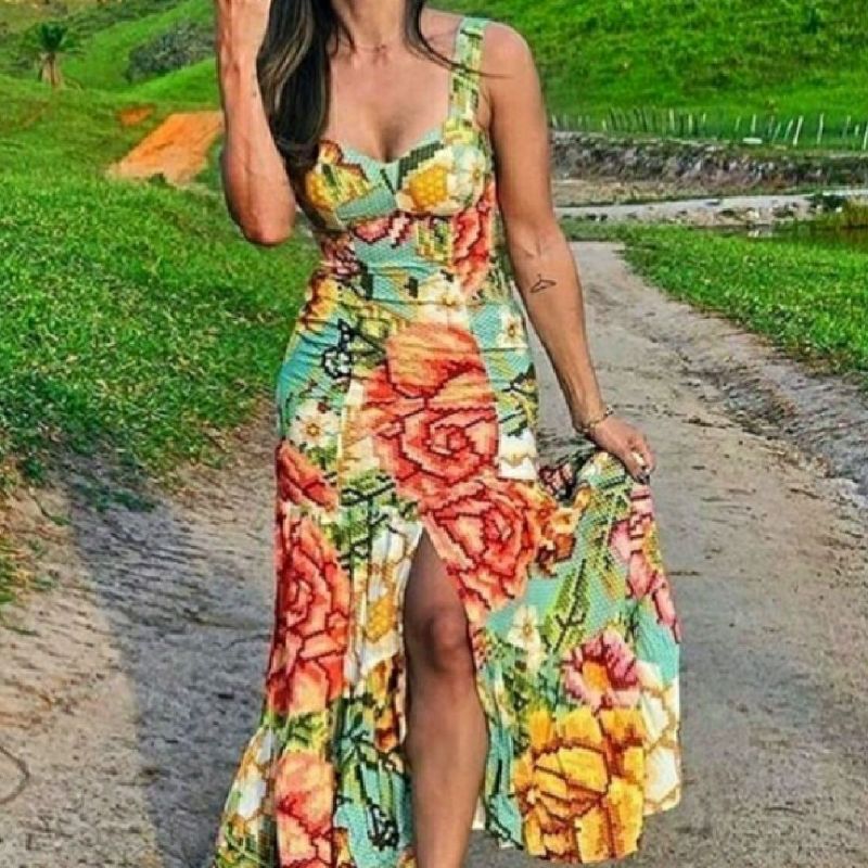 Vestido chita romantica clearance farm, Farm Rio Vestido Longo Chita Ponto a Ponto Modelo Sereia Azul Floral Midi Vestido Feminino Farm Nunca Usado 51330088 enjoei clearance