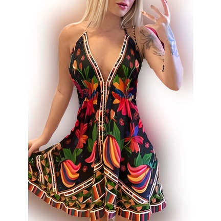 vestido longo e curto inspiracao farm frente nica m g gg estampado fundo preto ou branco moda blogueira brasil delicadeza tropical