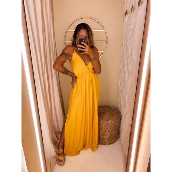 Vestido clearance amarelo gema, Vestido longo amarelo ouro plus size clearance