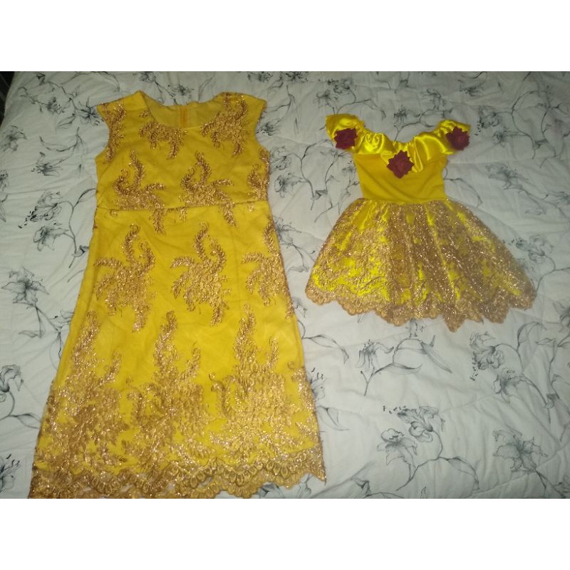 Vestido tal mãe clearance tal filha amarelo, Vestido tal m e tal filha festa Bela e a fera Luxo Renda amarelo e dourado clearance