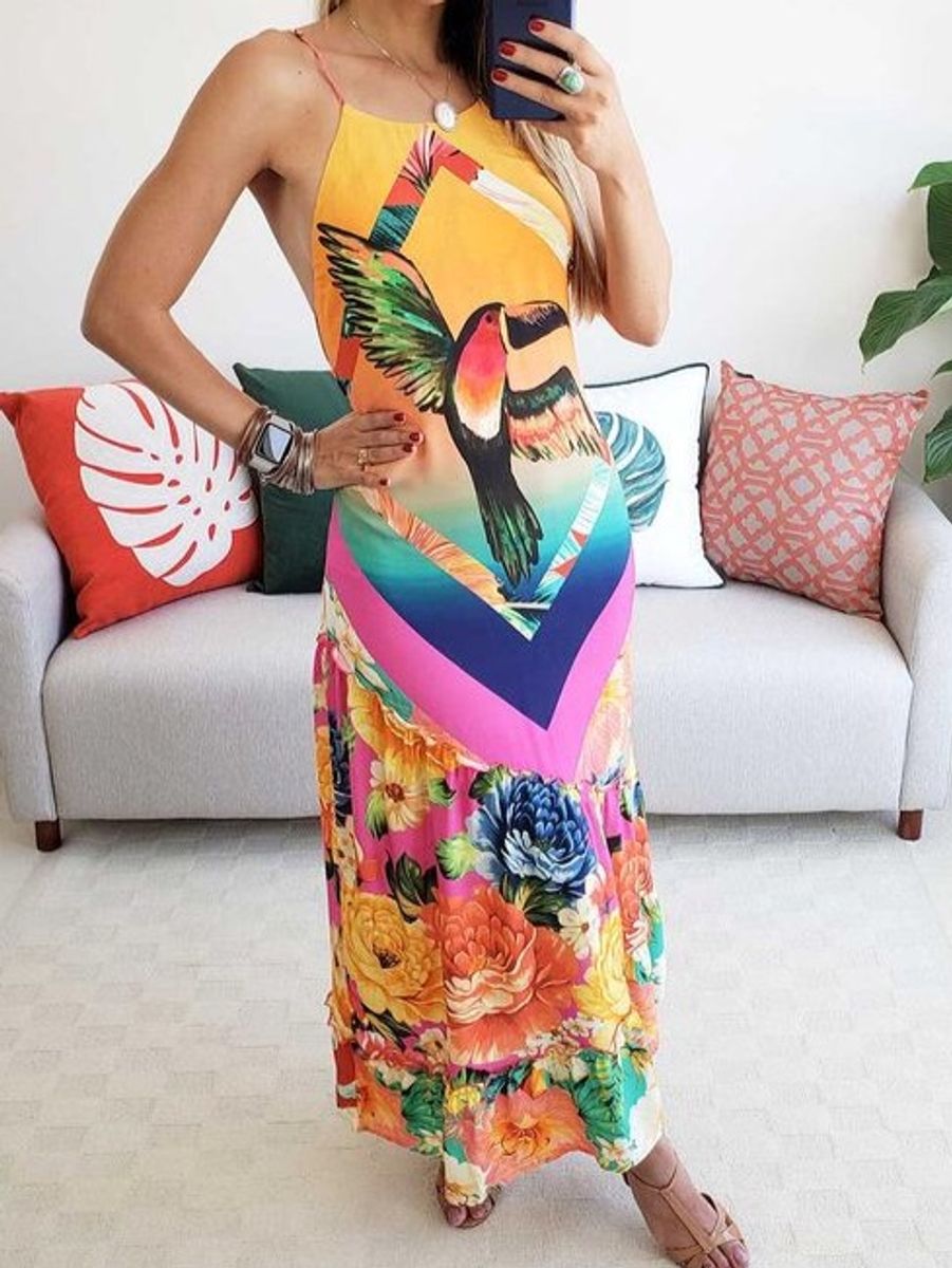 Vestido barra assimetrica clearance farm, Vestido Longo Alcinha Com Barra Arredondada E Bolsos Pink Salvatore clearance