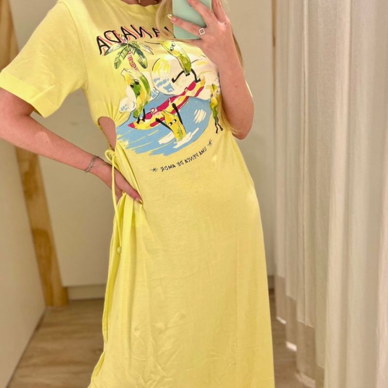 Vestido Farm Colisse Longo Algod o Perfeito Banana Bananada Amarelo com Recortes e Ajuste Desej o Vestido Feminino Farm Nunca Usado 94137062
