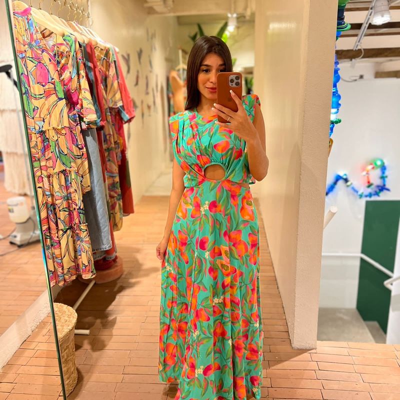 Vestido patch arara clearance farm, Vestido Farm Midi Patch Estampado Papaya P Vestido Feminino Farm clearance