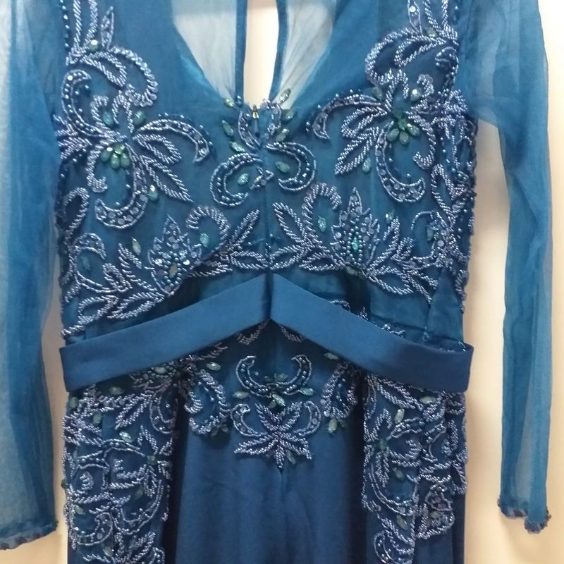 Vestido Festa Bordado Azul Ideal para Av M e de Noiva